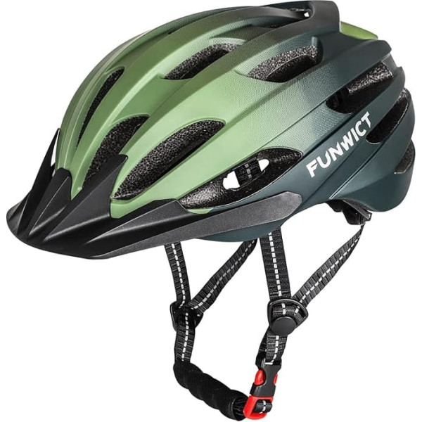 Shockproof bicycle helmet: built-in EPS/PC, CE certified bike helmet for safety Adjustable head circumference: sporty and stylish helmet for adults. Adjustable Size: L (57-61cm) Removable sun visor: protect your eyes from sunlight or other objects such as branches. Soft and breathable: 360° inner padding and 24 ventilation holes provide more comfort Occasions: suitable for multiple outdoor sports - bicycles / scooters / inline skating / riding / other extreme sports. › See more product details