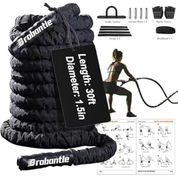 Battle rope with durable polyester filament material: an additional protective cover is added to the outer layer, the battle rope is an ideal choice for beginners and serious fitness enthusiasts for home gym and outdoor exercises. The comfortable coated handle protects your hands and provides a firm grip for all your workouts and exercises. The training rope with high tensile strength prevents breaking, abrasion or loosening Workout rope includes gloves and a sweat head towel as a gift: To prevent bruises or calluses of the palm, we have given gloves as gifts. We have also added sweat cloths to the package to make the fitness rope more convenient for you to use. Sturdy anchors, 4 x anchor screws, 4 x straps are also included in this package. Training rope is easy to use: Whether it is a home gym or an outdoor exercise, the training device is a good choice. The training rope can be used alone or as part of a team for ups and downs, pulling or climbing sports rope, sports rope, training rope, battle rope, fitness rope, lifting rope, adjustment rope, climbing rope, competition rope, etc. Outdoors, you can use accessories directly to tie them to trees, fixed posts or outdoor fitness equipment Weighted training rope is a good item to improve training conditions and comprehensive strength: exercise hands, arms, shoulders, back, core and even legs for full body exercise. Provides excellent exercises for boxers, swimmers, martial artists and baseball, basketball, football and tennis players Warranty:For this product, we offer 45 days money back guarantee and 12 months warranty. If you have any problems, we have a professional team to solve your problem. Buy worry-free! › See more product details