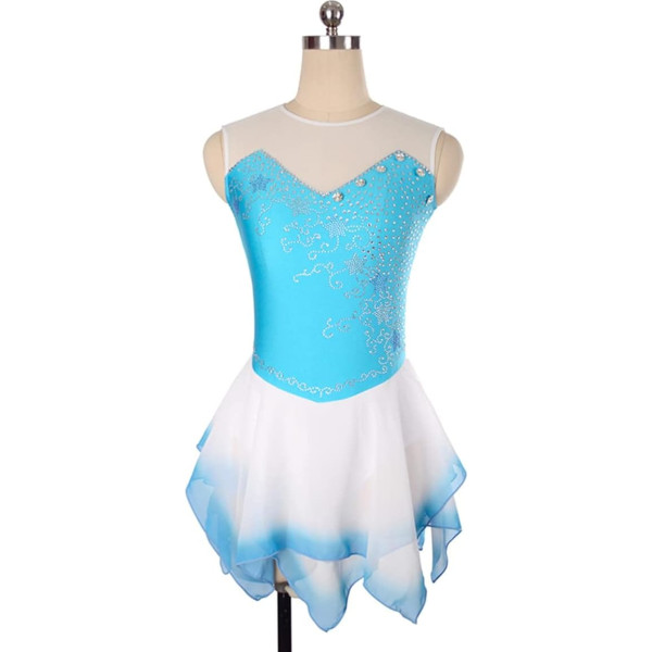 YDHTIZ Girls' Figure Skating Suit Blue Spandex Competition Suit Sleeveless Rhinestone Gymnastics Jersey Ballerina Outfits Competition Training Athletic Female