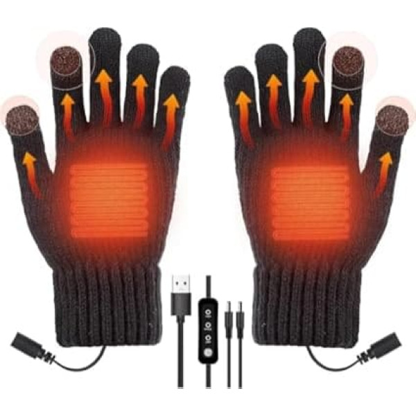 3 adjustable temperatures: upgrade heating design, with a heating pad on the back of the hand to keep your hands warm again. Adjustable temperature of the heating pad in 3 levels, high: about 47~55°C; middle: about 43~47°C; low: about 40~45°C, which is the most comfortable area for the human body without feeling dry or hot, and brings no effect on your hands movement. 【Full Finger Heating Gloves with Screen Touch】- These full finger heating gloves can perform any operation flexibly, such as games, typing, writing, etc. Thumb and index finger are equipped with screen touch areas, allowing you to touch the phone screen freely without taking off your gloves. Washable with water, simply remove the heating piece, gloves can be washed separately. If the heating pad meets water, please dry it before use. Improved comfort fabric: Our USB knitted gloves are made of the latest knitted fabric, which not only adds softness and comfort, but also maximises the warmth of the gloves. We also increased the distance line between the control buttons and the gloves to 123 cm, so that the left and right glove can be up to 250 cm apart when in use, which is perfect for skiing and cycling outdoors without restricting your movement too much. USB 5V Power Supply:Powered by USB 5V, safe and easy to use, just put on knitted heating gloves, plug them into a USB port with a 5V power supply, turn on the power, set the temperature and wait for the heating pad to heat up. Fashionable and youthful design guarantees warmth and grace that is very loved by the public. Unplug the power supply when not in use to avoid accidents caused by long-term heating. Ideal warm winter gift: USB heated gloves for women and men can be used as a very good heat tool in winter or in cold autumn. Interiors are suitable for working, learning, writing and playing in front of the computer, chatting on mobile phones, etc. Suitable for camping, hiking, skiing, riding, outdoor exploration (when using mobile power or not plugged in). It is the best gift choice for parents, relatives and friends on birthdays, Thanksgiving, Christmas and family and friends gatherings. › See more product details; Product description Feature: Improved heating and three adjustable comfort temperatures. 2. The full finger gloves cover all fingers and feature a touch screen area. 3. Made of the latest knitted fabric, softer and more comfortable. 4. Powered by USB 5V, safe and easy to use. 5. The best gift for parents, relatives and friends on birthdays, Thanksgiving, Christmas and family and friends gatherings. Specifications:. Material: knitted fabric. Flexible size: 26 x 14 cm (unisex). Temperature range: high: approx. 47 ~ 55 °C; Middle: about 43 ~ 47 °C; Low: about 40 ~ 45 °C Nominal voltage: 5 V. Rated current: 0.76 A. Weight: 100 g. Color: Black Package list: 1 Pair USB Heated Gloves 1 x USB charging cable. 1 x user manual (may not Not in Our products have been well tested, you can rest assured that your purchase is guaranteed. If you have any problems, please feel free to contact us first.; Product description Feature: Improved heating and three adjustable comfort temperatures. 2. The full finger gloves cover all fingers and feature a touch screen area. 3. Made of the latest knitted fabric, softer and more comfortable. 4. Powered by USB 5V, safe and easy to use. 5. The best gift for parents, relatives and friends on birthdays, Thanksgiving, Christmas and family and friends gatherings. Specifications:. Material: knitted fabric. Flexible size: 26 x 14 cm (unisex). Temperature range: high: approx. 47 ~ 55 °C; Middle: about 43 ~ 47 °C; Low: about 40 ~ 45 °C Nominal voltage: 5 V. Rated current: 0.76 A. Weight: 100 g. Color: Black Package list: 1 Pair USB Heated Gloves 1 x USB charging cable. 1 x user manual (may not Not in Our products have been well tested, you can rest assured that your purchase is guaranteed. If you have any problems, please feel free to contact us first.; Feature: Improved heating and three adjustable comfort temperatures. 2. The full finger gloves cover all fingers and feature a touch screen area. 3. Made of the latest knitted fabric, softer and more comfortable. 4. Powered by USB 5V, safe and easy to use. 5. The best gift for parents, relatives and friends on birthdays, Thanksgiving, Christmas and family and friends gatherings. Specifications:. Material: knitted fabric. Flexible size: 26 x 14 cm (unisex). Temperature range: high: approx. 47 ~ 55 °C; Middle: about 43 ~ 47 °C; Low: about 40 ~ 45 °C Nominal voltage: 5 V. Rated current: 0.76 A. Weight: 100 g. Color: Black Package list: 1 Pair USB Heated Gloves 1 x USB charging cable. 1 x user manual (may not Not in Our products have been well tested, you can rest assured that your purchase is guaranteed. If you have any problems, please feel free to contact us first.