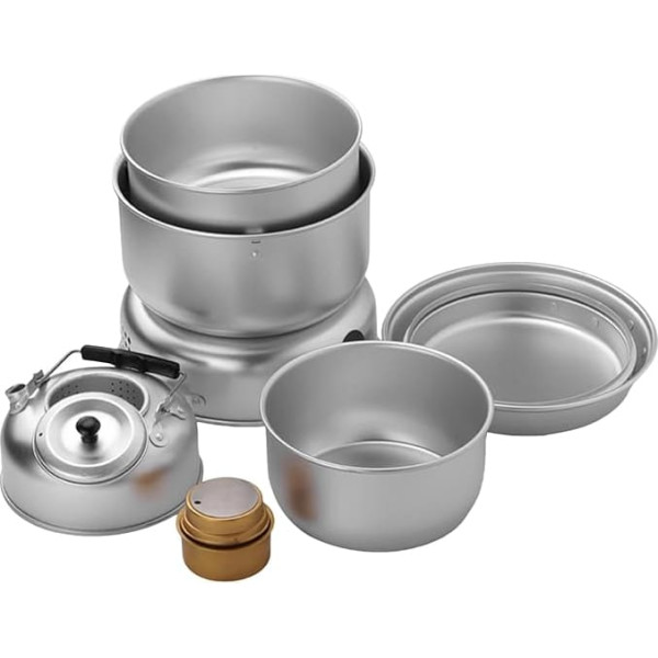 Comprehensive 10-piece set: This all-in cooking set contains items such as pots, pans, a kettle, utensils and more and offers everything you need for preparing a variety of outdoor meals. With this versatile set, you can cook, cook, and serve meals with ease, making it perfect for camping trips, hiking or backpacking. LIGHTWEIGHT & PORTABLE Made of aluminum, this cooking set is designed for portability without sacrificing quality. Each piece is lightweight, ensures easy transportation in your backpack while maximizing space for other gear, making it an ideal choice for those who are on the backpack. Non-stick cookware: The non-stick coating of the pots and pans ensures that your food cooks evenly and makes cleanup a breeze. Spend less time scrubbing and more time enjoying your outdoor experience with cookware that reduces sticking and burning. Multifunctional design: this versatile cooking set is perfect for a variety of cooking methods, whether you are boiling, frying or simmering water. It can accommodate different cooking styles, making it suitable for preparing from simple snacks to full meals in the great outdoors. DURABLE CONSTRUCTION Built to withstand the rigors of outdoor cooking, this aluminum camping cookware is both sturdy and resilient. Its construction ensures that it can withstand high heat and regular use, providing you with a cooking solution for many camping trips. › See more product details; Product description Description Enhance your outdoor cooking experience with our 10 piece backpacking cooking set specially designed for camping and backpacking enthusiasts. This aluminum camping cooking set is lightweight and portable, making it easy to carry your adventures. With non-stick cookware, this multifunctional camping set ensures efficient cooking and easy cleanup, whether you're preparing a meal in the backcountry or enjoying a picnic in the park. With everything you need for a complete cooking experience, this cookware set is an addition to your outdoor gear. Product features: Product Name:10 Piece Outdoor Cookware Set Material: Anodized Aluminum Weight: 978 g. Product size: approx. 21 x 21 x 10.3 cm. Product list: 1 large frying pan. 1 small frying pan. 1 x kettle. 1 large pot. 1 small pot. 1 pot clip. 1 x alcohol cooker. 1 windproof plate rack. 1 windproof base frame. 1 x storage strap; Product description Description Enhance your outdoor cooking experience with our 10 piece backpacking cooking set specially designed for camping and backpacking enthusiasts. This aluminum camping cooking set is lightweight and portable, making it easy to carry your adventures. With non-stick cookware, this multifunctional camping set ensures efficient cooking and easy cleanup, whether you're preparing a meal in the backcountry or enjoying a picnic in the park. With everything you need for a complete cooking experience, this cookware set is an addition to your outdoor gear. Product features: Product Name:10 Piece Outdoor Cookware Set Material: Anodized Aluminum Weight: 978 g. Product size: approx. 21 x 21 x 10.3 cm. Product list: 1 large frying pan. 1 small frying pan. 1 x kettle. 1 large pot. 1 small pot. 1 pot clip. 1 x alcohol cooker. 1 windproof plate rack. 1 windproof base frame. 1 x storage strap; Description Enhance your outdoor cooking experience with our 10 piece backpacking cooking set specially designed for camping and backpacking enthusiasts. This aluminum camping cooking set is lightweight and portable, making it easy to carry your adventures. With non-stick cookware, this multifunctional camping set ensures efficient cooking and easy cleanup, whether you're preparing a meal in the backcountry or enjoying a picnic in the park. With everything you need for a complete cooking experience, this cookware set is an addition to your outdoor gear. Product features: Product Name:10 Piece Outdoor Cookware Set Material: Anodized Aluminum Weight: 978 g. Product size: approx. 21 x 21 x 10.3 cm. Product list: 1 large frying pan. 1 small frying pan. 1 x kettle. 1 large pot. 1 small pot. 1 pot clip. 1 x alcohol cooker. 1 windproof plate rack. 1 windproof base frame. 1 x storage strap