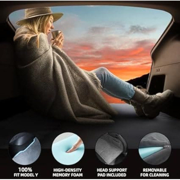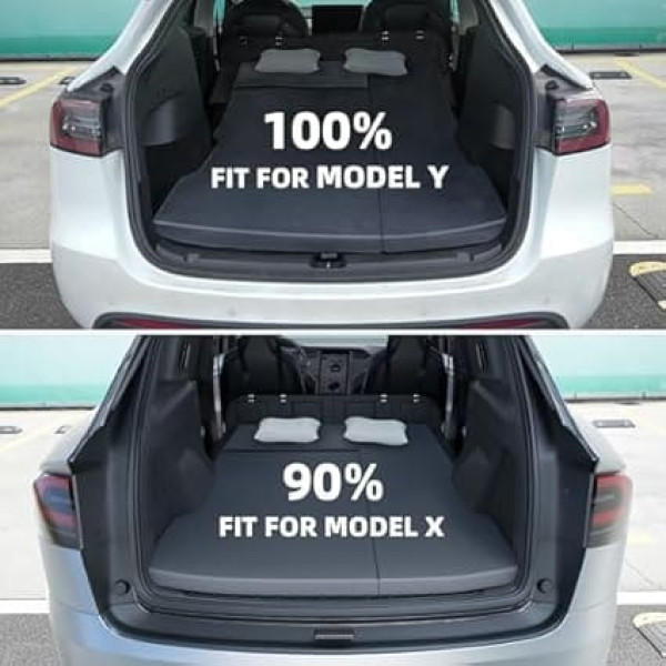 PERFECT FIT FOR Tesla Model Y The shape of the mattress topper is 100% fit for Tesla Model Y, but 90% fits Tesla Model X, which means you can use it on Model X, but it doesn't fit perfectly with its boot floor shape. High density memory foam: Provides superior comfort and support with improved high-density foam that acts as a supportive base and protects your back and spine. Unlike inflatable mattresses, the memory foam mattress covered by a short plush cover gives you a home bed feeling and a restful sleep. And it is breathable and removable for cleaning. Foldable and space-saving: Easy setup and designed to be easily foldable in the storage bag, can be rolled up and stored in the hidden trunk, making full use of the space in your Model Y and it is ideal for backcountry camping, road trips and car camping. EXTRA HEADREST PAD: Provides ample sleeping space with a head protection extension for added comfort and safety while sleeping. There will be more support and the head of the mattress will not sag when sleeping with this headrest. TWIN SIZE MATTRESS SET The mattress topper consists of a 26.5\; Product description The OPODEE upgraded memory foam camping mattress is an exceptional sleeping solution specially designed for Tesla models Y and Model X vehicles. This double mattress features a high-density memory foam that moulds to your body for optimal comfort and support, making it perfect for restful nights on the road. Its foldable design ensures easy storage and space-saving convenience when not in use. The mattress is equipped with a headrest pad to improve your sleeping experience and maintain proper alignment. In addition, the set includes storage bags for organized packing and two pillows for added convenience. Whether you're embarking on a long road trip or just need a cozy resting place, this mattress offers a blend of luxury and functionality tailored to Tesla owners.; Product description The OPODEE upgraded memory foam camping mattress is an exceptional sleeping solution specially designed for Tesla models Y and Model X vehicles. This double mattress features a high-density memory foam that moulds to your body for optimal comfort and support, making it perfect for restful nights on the road. Its foldable design ensures easy storage and space-saving convenience when not in use. The mattress is equipped with a headrest pad to improve your sleeping experience and maintain proper alignment. In addition, the set includes storage bags for organized packing and two pillows for added convenience. Whether you're embarking on a long road trip or just need a cozy resting place, this mattress offers a blend of luxury and functionality tailored to Tesla owners.; The OPODEE upgraded memory foam camping mattress is an exceptional sleeping solution specially designed for Tesla models Y and Model X vehicles. This double mattress features a high-density memory foam that moulds to your body for optimal comfort and support, making it perfect for restful nights on the road. Its foldable design ensures easy storage and space-saving convenience when not in use. The mattress is equipped with a headrest pad to improve your sleeping experience and maintain proper alignment. In addition, the set includes storage bags for organized packing and two pillows for added convenience. Whether you're embarking on a long road trip or just need a cozy resting place, this mattress offers a blend of luxury and functionality tailored to Tesla owners.