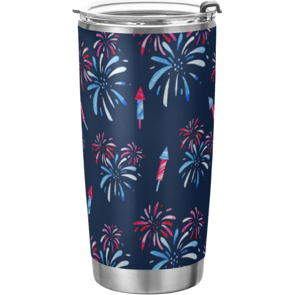 Yasala 4th of July Tumbler Fireworks Blue Red Insulated Coffee Cup Drink Container Travel Mug with Straw and Lid Double Wall Stainless Steel 20oz BPA Free for Sports, Back to School