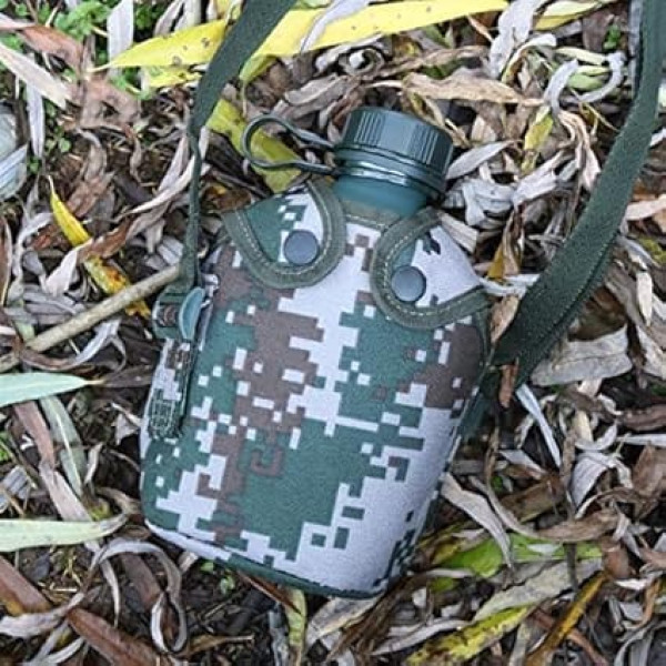 OAREA 1L Outdoor Sports Water Bottle Military Camping Water Bottle with Bag Canteen Bottle Camping Hiking Survival Drinking Water Kettle