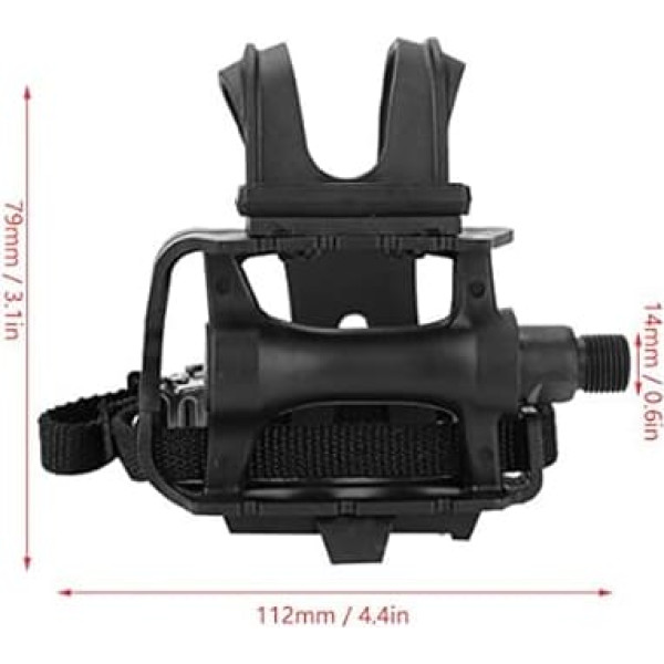 Hollow out design: the bicycle pedal has a hollow design, making the pedal lighter and more compact. It will not cause much strain. Nylon material: The bicycle pedal is made of high-quality nylon material, which is wear-resistant and durable and has excellent strength. Toe clips and straps: The bicycle pedal is equipped with toe clips and straps that reduce the likelihood of your feet slipping off the pedals. [Size] The size of the bicycle pedal is approx. 112 x 79 mm, the spindle approx. 14 mm and the weight approx. 375g [Application] The bicycle pedal is suitable for mountain bikes, road bikes and exercise bikes. It is easy to install and use. It can make driving easier. › See more product details