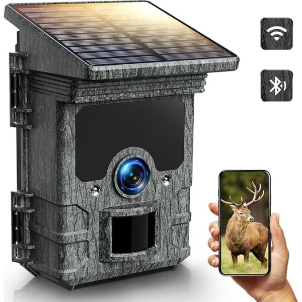 VOOPEAK Wildlife Camera Solar 4K 30MP Wildlife Camera WiFi Bluetooth IP66 Waterproof Hunting Camera 36 LED IR Wildlife Camera with Motion Sensor Night Vision Mobile Phone Transmission 120° Wide Angle