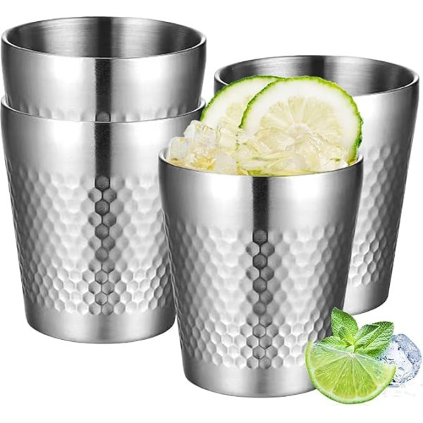 Edelstahlmaterial: Die Edelstahlbecher sind sicher, gesund, stark und wiederverwendbar, um eine gute rostbeständigkeit und lange haltbarkeit zu gewährleisten. 300 ml große Kapazität:Edelstahlbecher mit großem Fassungsvermögen: 300 ml, leicht zu waschen, wiederverwendbar, spülmaschinenfest. Glatte Kante, gute Verarbeitung: Der Edelstahlbecher hat eine exquisite Verarbeitung, eine glatte und zarte Oberfläche, schön und modisch, Edelstahlbecher Bechermund des ist sorgfältig verdickt und gewellt, macht das Tragen angenehm und verletzt Ihren Mund nicht. Stapelbar und nimmt keinen Platz ein: Edelstahlbecher sind stapelbar, einfach zu verstauen und nehmen keinen Platz ein, tragbar, einfach zu tragen, Edelstahlbecher perfekt für Wandern, Partys, Camping, Picknicks, am Strand und andere Outdoor- oder Indoor-Aktivitäten. Doppelwandiges Design: Set mit 4 Edelstahlbecher bechern, Das doppelwandige isolierte design ist isoliert und verbrühungssicher und löst alle probleme › See more product details; Product description 4 Stück Edelstahlbecher, Edelstahl Tasse, Doppelwandig Isoliert Hammermuster Camping TassenEdelstahlbecher beträgt 300ml, vielseitig einsetzbar zum befüllen mit saft, kaffee, bier, smoothies, milch.Der Edelstahlbecher ist aus lebensmittelechtem edelstahl, langlebig, gesund und sicher.Edelstahlbecher sind stapelbar, einfach zu verstauen und nehmen keinen Platz ein, tragbarSpezifikation:Material: EdelstahlFarbe: SilberGröße:8.4 x 9.5cmMenge: 4 StückPaket Beinhaltet:4 x Edelstahlbecher; Product description 4 Stück Edelstahlbecher, Edelstahl Tasse, Doppelwandig Isoliert Hammermuster Camping TassenEdelstahlbecher beträgt 300ml, vielseitig einsetzbar zum befüllen mit saft, kaffee, bier, smoothies, milch.Der Edelstahlbecher ist aus lebensmittelechtem edelstahl, langlebig, gesund und sicher.Edelstahlbecher sind stapelbar, einfach zu verstauen und nehmen keinen Platz ein, tragbarSpezifikation:Material: EdelstahlFarbe: SilberGröße:8.4 x 9.5cmMenge: 4 StückPaket Beinhaltet:4 x Edelstahlbecher; 4 Stück Edelstahlbecher, Edelstahl Tasse, Doppelwandig Isoliert Hammermuster Camping TassenEdelstahlbecher beträgt 300ml, vielseitig einsetzbar zum befüllen mit saft, kaffee, bier, smoothies, milch.Der Edelstahlbecher ist aus lebensmittelechtem edelstahl, langlebig, gesund und sicher.Edelstahlbecher sind stapelbar, einfach zu verstauen und nehmen keinen Platz ein, tragbarSpezifikation:Material: EdelstahlFarbe: SilberGröße:8.4 x 9.5cmMenge: 4 StückPaket Beinhaltet:4 x Edelstahlbecher