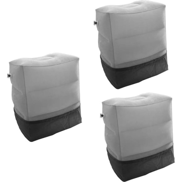 BCOATH 3 Sets Inflatable Mat Desk Footrest Travel Pillow for Sleeping Airplanes Promote Circulation Icing Train Comfortable Footrest Leg Cushion Flocking Material Adjust Grey