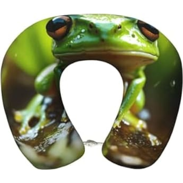AKDODK Nackenkissen mit Frosch- und Regendruck, Reisekissen aus Memory-Schaum, tragbares Flugzeug-Zubehör