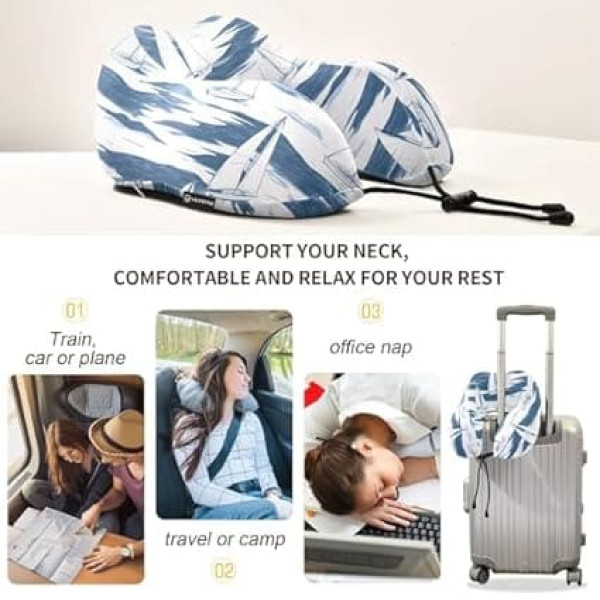 OWFKAY Travel Pillow, White Boat, Sailing in the Sea, Memory Foam, Neck Pillow, Headrest, Cozy Soft Pillow, Perfect for Sleeping Rest, Airplane, Car and Home