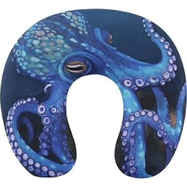 Blaues Oktopus Reisekissen Nackenstütze Memory Foam U-förmiges Kissen Weich Bequem Reise Nackenkissen Schlafruhe Kissen Reisezubehör für Flugzeug Auto Büro