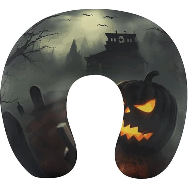 Halloween Horror Reisekissen Nackenstütze Memory Foam U-förmiges Kissen Weich Bequem Reise Nackenkissen Schlafruhe Kissen Reisezubehör für Flugzeug Auto Büro