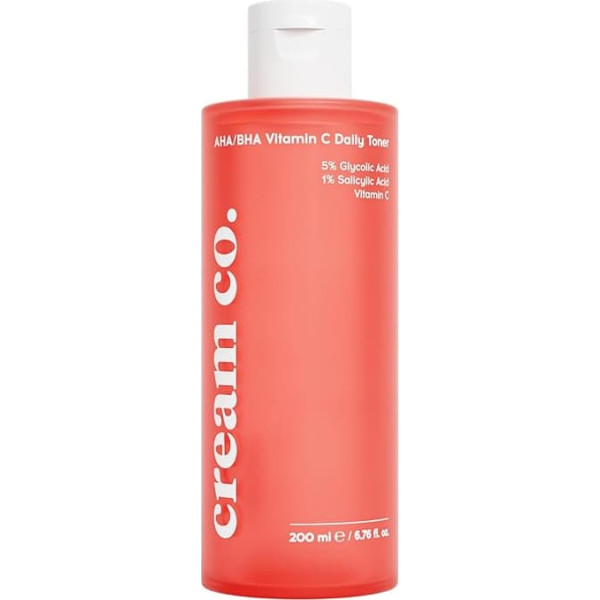 Cream Co. 200ml AHA/BHA Vitamin C Daily Use Facial Toner Exfoliating Face Lotion for Oily Blended and Normal Skin Dermatologically Tested Facial Toner, Sulphate and Parabe