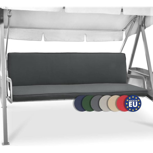 High-quality cushion for a swinging hammock The swinging hammock cushion is suitable for all standard 3-seat models. Transform an ordinary garden swing into a comfortable and cosy swinging seat and a real eye-catcher in your garden, on your patio or porch. UV light resistant and with removable cover. The cushion for a 3-seat swinging hammock is made from 60% cotton and 40% polyester and has a UV lightfastness of 5. The cover has a zip and is removable. Simply wash it by hand at 30 °C. Comfortable and dimensionally stable: you will receive 2 cushions, each measuring 180 x 50 x 6 cm. You can use one as a comfortable seat pad and the other as a back support. The padding consists of polyurethane approx. 6 cm thick that is covered in jersey fabric. Oeko-Tex certified in accordance with Standard 100. The Loft HS garden swing cushions from Beautissu are tested by the Hohenstein Institute for environmental compatibility and have the Oeko-Tex Standard 100 certification. - Box contents: 2 cushions for 3-seat swinging hammocks with 180 x 50 x 6 cm dimensions – filled with a polyurethane padding. The cushions impress with a fabric quality of 180 g/m². Please note: The swing hammock is not included. › See more product details