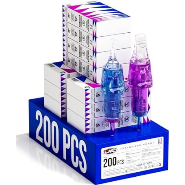 EN04B dimensions package: 200pcs RL RS RM mixed needles. Achieve different types of tattoo designs with CNC cartridge needles. Precision Work: Made of high quality surgical steel, CNC tattoo needles glide effortlessly through the skin for delicate lines and shades. SAFE TO USE The cartridges come pre-sterilized and individually wrapped for a hygienic tattoo experience. Equipped with a safe membrane that ensures no ink or blood can leak into the handle. Advantages: better visibility, sharp tip, fast dyeing, anti-backflow, strong ink storage capacity, etc. CNC cartridges lay paint smoothly and minimize trauma to the skin. And we add a stabilizer to stop the wobbling to create accurate work. TOP SELLING BRAND CNC has always been a leading supplier of high quality tattoo equipment, needles are made to withstand regular professional use, and you can buy our cartridges with confidence. If there is a problem with the product or you have other size requirements, please contact us at any time. › See more product details