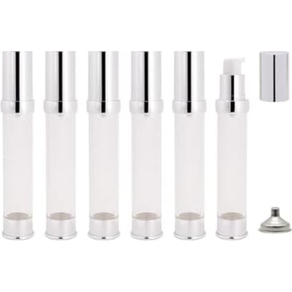 AJLTPA Transparente luftlose Pumpflaschen mit Trichter, nachfüllbar, Reisegröße, Vakuum-Feuchtigkeitscreme, Kosmetikbehälter für Foundations, Creme, Seren, Shampoo, Lotion, 6 Stück (Silber)