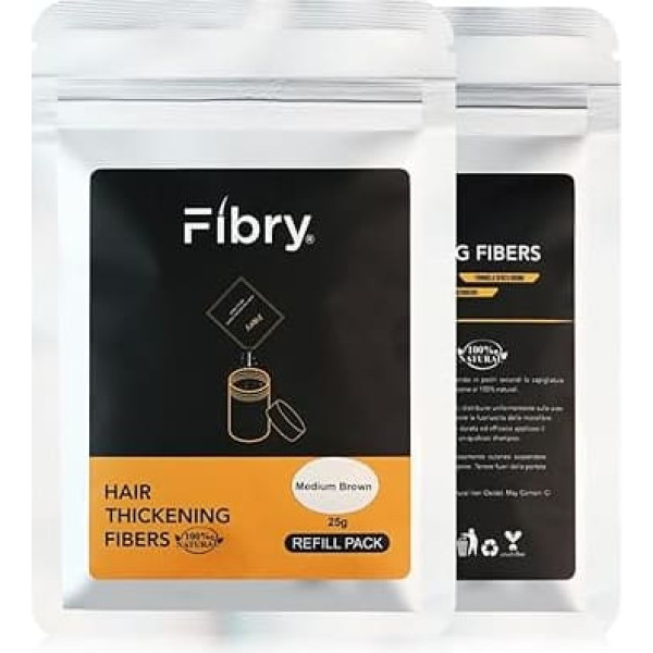 FIBRY Volume Powder for Hair with 100% Natural Fibres, Instant Hair Thickening or Fine Hair, Instant Healing Against Thinning and Baldness, 25g, Medium Brown
