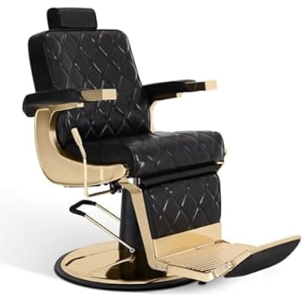 FLEXIBLE & ADJUSTABLE The barber chair rotates 360° with a locking mechanism and tilts up to 133°; the height of the barber chairs can be adjusted by 12 cm and the headrest is 10 cm adjustable and removable Stable and durable: the barber chair has a precision machined and electroplated metal frame, which is rust-proof, scratch-resistant and corrosion-resistant; With its robust 26 inch base and hydraulic pump, it provides high stability, a load capacity of up to 150 kg, and a long service life Comfortable seat: the seat of the modern hairdressing chair is covered with PVC synthetic leather, which is skin-friendly, breathable, durable and easy to clean; The soft and elastic barber chair is padded with high density foam SIMPLE AND LUXURIOUS DESIGN The hairdressing chair has a modern design with diamond stitching and looks luxurious; The salon chair is ideal for hair salons, beauty salons, spas and tattoo shops EASY ASSEMBLY The product is packed by 2 packages; simple assembly is required; detailed installation instructions are packed › See more product details