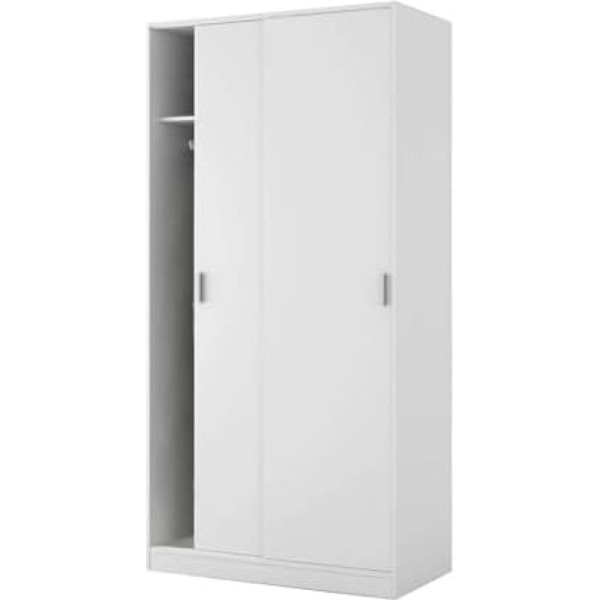 GUARDAROBA Bedroom Wardrobe with 2 Sliding Doors, Wardrobe with Shelf and Clothes Rail, 100 x 50 x 200 cm, White Structure and use - Wardrobe complete with two sliding doors with handles, inside a clothes rail and a fixed shelf, thanks to the internal organization of its rooms, it offers a large storage space - The entire structure of the furniture with vintage detail is perfect for space-saving furnishing of a double room, children's room or guest room - The clothes rail allows you to store your clothes and clothes neatly - Suitable for storing clothes and clothing accessories, bags, shoes or items of clothes Certifications and innovations - Design furniture with PEFC certification, perfect for furnishing a modern and bright room: it is the ideal product for anyone looking for a functional and space-saving product for your home or apartment. Not in English) Technical features: Product made of laminated wood with a thickness of 15 mm, shock and scratch resistant material, durable and waterproof. Melamine finish edges with a thickness of 0.6 mm. Movable backrest in white made of MDF with a thickness of 3 mm. Classification according to formaldehyde type E1, ABS sliding rails for the doors, extendable clothes tube made of aluminium. - Handles made of ABS colour: grey. Maximum weight of the product: 45 kg. Maximum shelf weight: 5 kg. Maximum garment tube weight: 8 kg Dimensions in cm - Wardrobe: Length: 100 cm, Width: 50 cm, Height: 200 cm › See more product details; Product description Guardaroba 2 Doors – Bedroom Wardrobe with Shelf and Hanging Rail 100 x 50 x 200 cm, White. Structure and use - Wardrobe complete with two sliding doors with handles, inside a clothes rail and a fixed shelf, thanks to the internal organisation of its rooms, it offers a large storage space - The entire structure of the furniture with vintage details is perfect for decorating a double room, a children's room or a guest room - The clothes rail allows you to store your clothes and clothes neatly - Suitable for accessories, bags, shoes or clothing items. CERTIFICATIONS AND INNOVATIONS - Design furniture with PEFC certification, perfect for furnishing a modern and bright room: it is the ideal product for anyone looking for a functional and space-saving product for their home or home. Own apartment - warranty 2 years from date of purchase - delivered disassembled with assembly instructions (English language not guaranteed) English language not guaranteed). Technical features: - Product made of laminated wood with a thickness of 15 mm, shock and scratch-resistant, durable and waterproof - Melamine finish edges with a thickness of 0.6 mm - Movable backrest made of MDF with a thickness of 3 mm - Classification according to content or release of formaldehyde type E1 - Gue sliding rails made of ABS for the doors - Extendable aluminium clothes tube - Handles made of grey ABS - ABS - ABS - Maximum : 45 kg - Maximum shelf weight: 5 kg - Maximum weight of the clothes tube: 8 kg. Wardrobe dimensions: length: 100 cm, width: 50 cm, height: 200 cm; Product description Guardaroba 2 Doors – Bedroom Wardrobe with Shelf and Hanging Rail 100 x 50 x 200 cm, White. Structure and use - Wardrobe complete with two sliding doors with handles, inside a clothes rail and a fixed shelf, thanks to the internal organisation of its rooms, it offers a large storage space - The entire structure of the furniture with vintage details is perfect for decorating a double room, a children's room or a guest room - The clothes rail allows you to store your clothes and clothes neatly - Suitable for accessories, bags, shoes or clothing items. CERTIFICATIONS AND INNOVATIONS - Design furniture with PEFC certification, perfect for furnishing a modern and bright room: it is the ideal product for anyone looking for a functional and space-saving product for their home or home. Own apartment - warranty 2 years from date of purchase - delivered disassembled with assembly instructions (English language not guaranteed) English language not guaranteed). Technical features: - Product made of laminated wood with a thickness of 15 mm, shock and scratch-resistant, durable and waterproof - Melamine finish edges with a thickness of 0.6 mm - Movable backrest made of MDF with a thickness of 3 mm - Classification according to content or release of formaldehyde type E1 - Gue sliding rails made of ABS for the doors - Extendable aluminium clothes tube - Handles made of grey ABS - ABS - ABS - Maximum : 45 kg - Maximum shelf weight: 5 kg - Maximum weight of the clothes tube: 8 kg. Wardrobe dimensions: length: 100 cm, width: 50 cm, height: 200 cm; Guardaroba 2 Doors – Bedroom Wardrobe with Shelf and Hanging Rail 100 x 50 x 200 cm, White. Structure and use - Wardrobe complete with two sliding doors with handles, inside a clothes rail and a fixed shelf, thanks to the internal organisation of its rooms, it offers a large storage space - The entire structure of the furniture with vintage details is perfect for decorating a double room, a children's room or a guest room - The clothes rail allows you to store your clothes and clothes neatly - Suitable for accessories, bags, shoes or clothing items. CERTIFICATIONS AND INNOVATIONS - Design furniture with PEFC certification, perfect for furnishing a modern and bright room: it is the ideal product for anyone looking for a functional and space-saving product for their home or home. Own apartment - warranty 2 years from date of purchase - delivered disassembled with assembly instructions (English language not guaranteed) English language not guaranteed). Technical features: - Product made of laminated wood with a thickness of 15 mm, shock and scratch-resistant, durable and waterproof - Melamine finish edges with a thickness of 0.6 mm - Movable backrest made of MDF with a thickness of 3 mm - Classification according to content or release of formaldehyde type E1 - Gue sliding rails made of ABS for the doors - Extendable aluminium clothes 