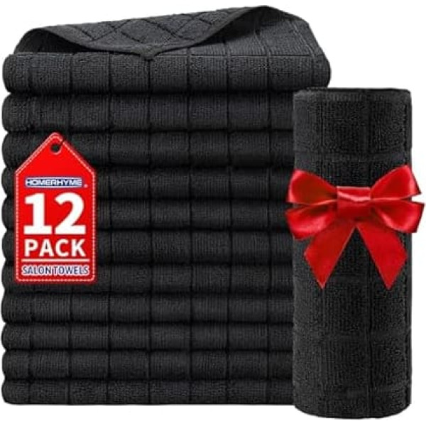 HOMERHYME 12 Pack Black Salon Towels, Quick Dry Microfiber Towels, Soft Absorbent for Gym, Bathroom, Spa and Hair Care (Non Bleach-Resistant), 16" x 27"