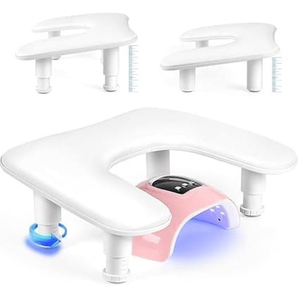U-shaped Hand Rest Nail Studio Wrist Rest: Height Adjustable Hand Cushion Manicure - White Manicure Arm Rest Stand for Nail Art Salons (White)
