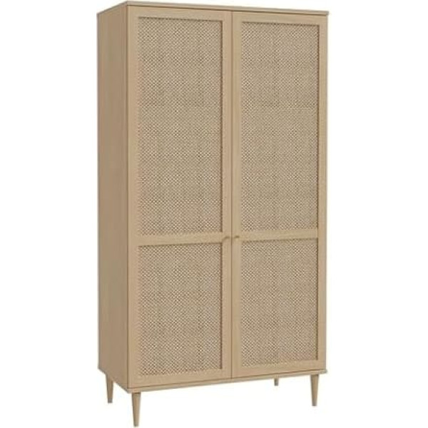 Forte Calasetta Wardrobe 110 cm Boho Style Viennese Wicker Wardrobe with 2 Doors Clothes Rail Shelves Wood Decor: Elegancia Oak/Technorattan, 110 cm Wide x 208 cm High x 52 cm Deep