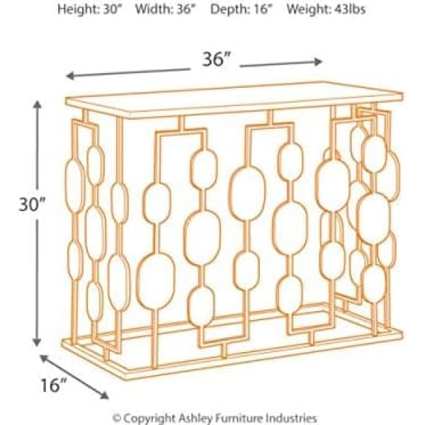 Signature Design By Ashley - Majaci Console Table - Modern - Antique Gold Metal - Mirrored Glass Stop and Accents