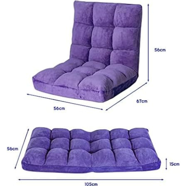 ★High-quality materialThe floor chair is supported by robust steel tubes and filled with soft sponge. In addition, its surface fabric is made of coral fleece. Therefore, the chair has strong stability and high softness. And the excellent material properties are good for a long service life. ★Foldable advantagesThe folding design is convenient to use. Above all, the chair with light weight is easy to carry and move. If you want to save more space, the folding chair is easy to store. You can put it flat or 90 degrees. Stepwise adjustableThe backrest is fixed in 14 different positions and offers a variety of possibilities for seat. You can adjust your needs to a right angle accordingly. ★Seat ComfortThis floor chair helps you maintain a healthy and comfortable sitting position. It can relieve the pressure on his back and provide you with the best comfort. In addition, you can relax thanks to the softness of the fabric. ★Universal useThe comfortable chair can be used as a living room lounge or chair at home or in the office and is suitable for almost any room. You can watch TV, read books and play with your children. › See more product details