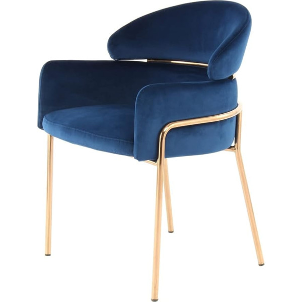 Qiyano Retro Look Chair with Velvety Fabric Cover and Design Frame Made of Stainless Steel Metal Soft Seat Backrest Armrest Comfortable Living Room Dining Room Colour: Blue