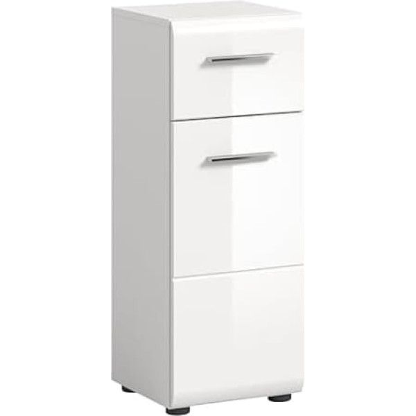 Design/Style: Simple and modern design with white high gloss finish for an elegant and contemporary look in the bathroom. Functionality: Compact size with ample storage space for towels, toiletries and other bathroom essentials; additional storage space for organized storage. Quality/Care: High quality workmanship and durable materials for long-lasting use in a damp bathroom environment; easy-care surfaces that are easy to clean and remain beautiful for a long time. Areas of use: perfect for the bathroom as a space-saving standing cabinet for storing toiletries and to complement the bathroom decor. Sustainability: the furniture is made from FSC certified wood material to protect forests › See more product details