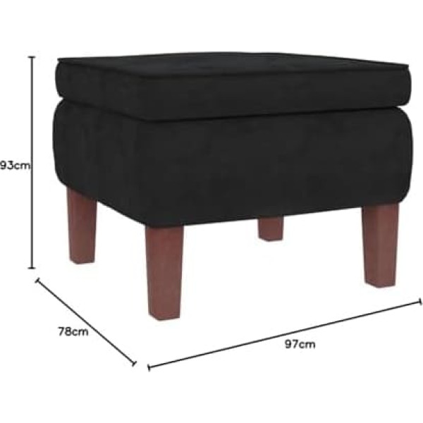 This rocking chair with footstool will become the centre of your living room and a favourite place to read or relax. SOFT VELVET: Armchair and stool are upholstered in velvet which is a soft, luxurious fabric characterized by a dense pile of evenly cut, soft fibers. Velvet fabric feels particularly soft and comfortable. Swing blades: relax by enjoying a comfortable sitting position and a soothing, gentle rocking movement. Comfortable armrests: On the armrests you can rest your arms comfortably. Practical stool: on the stool you can comfortably put your feet up at the end of the day. You can also use it as an additional seat in your living room or in the entrance area. Note: Each product comes with assembly instructions in the packaging for easy installation. › See more product details; Product description Product description This rocking chair with footstool will become the centre of your living room and a favourite place to read or relax. SOFT VELVET: Armchair and stool are upholstered in velvet which is a soft, luxurious fabric characterized by a dense pile of evenly cut, soft fibers. Velvet fabric feels particularly soft and comfortable. Swing blades: relax by enjoying a comfortable sitting position and a soothing, gentle rocking movement. Comfortable armrests: on the armrests you can rest your arms comfortably. Practical stool: on the stool you can comfortably put your feet up at the end of the day. You can also use it as an additional seat in your living room or in the entrance area. Note: Each product comes with assembly instructions in the packaging for easy installation. Colour: black. Material: velvet (100% polyester), solid rubber wood. Filling: foam. Chair: Dimensions: 78 x 93 x 97 cm (W x D x H). Seat width: 50 cm. Seat depth: 55 cm. Backrest height: 63 cm. Seat height from floor: 46 cm. Armrest height from floor: 64 cm. Stool: Dimensions: 52 x 52 x 42 cm (W x D x H). Package includes: 1 x rocking chair. 1 x stool. Safety Warning Achtung: Maximal 110 kg pro Sitz. Bitte beachten Sie die Gewichtseinschränkung, um Instabilität zu vermeiden. Verwenden Sie den Schaukelstuhl vorsichtig und achten Sie darauf, dass Kinder nicht unbeaufsichtigt darauf sitzen oder spielen.; Product description Product description This rocking chair with footstool will become the centre of your living room and a favourite place to read or relax. SOFT VELVET: Armchair and stool are upholstered in velvet which is a soft, luxurious fabric characterized by a dense pile of evenly cut, soft fibers. Velvet fabric feels particularly soft and comfortable. Swing blades: relax by enjoying a comfortable sitting position and a soothing, gentle rocking movement. Comfortable armrests: on the armrests you can rest your arms comfortably. Practical stool: on the stool you can comfortably put your feet up at the end of the day. You can also use it as an additional seat in your living room or in the entrance area. Note: Each product comes with assembly instructions in the packaging for easy installation. Colour: black. Material: velvet (100% polyester), solid rubber wood. Filling: foam. Chair: Dimensions: 78 x 93 x 97 cm (W x D x H). Seat width: 50 cm. Seat depth: 55 cm. Backrest height: 63 cm. Seat height from floor: 46 cm. Armrest height from floor: 64 cm. Stool: Dimensions: 52 x 52 x 42 cm (W x D x H). Package includes: 1 x rocking chair. 1 x stool. Safety Warning Achtung: Maximal 110 kg pro Sitz. Bitte beachten Sie die Gewichtseinschränkung, um Instabilität zu vermeiden. Verwenden Sie den Schaukelstuhl vorsichtig und achten Sie darauf, dass Kinder nicht unbeaufsichtigt darauf sitzen oder spielen.; Product description This rocking chair with footstool will become the centre of your living room and a favourite place to read or relax. SOFT VELVET: Armchair and stool are upholstered in velvet which is a soft, luxurious fabric characterized by a dense pile of evenly cut, soft fibers. Velvet fabric feels particularly soft and comfortable. Swing blades: relax by enjoying a comfortable sitting position and a soothing, gentle rocking movement. Comfortable armrests: on the armrests you can rest your arms comfortably. Practical stool: on the stool you can comfortably put your feet up at the end of the day. You can also use it as an additional seat in your living room or in the entrance area. Note: Each product comes with assembly instructions in the packaging for easy installation. Colour: black. Material: velvet (100% polyester), solid rubber wood. Filling: foam. Chair: Dimensions: 78 x 93 x 97 cm (W x D x H). Seat width: 50 cm. Seat depth: 55 cm. Backrest height: 63 cm. Seat height from floor: 46 cm. Armrest height from floor: 64 cm. Stool: Dimensions: 52 x 52 x 42 cm (W x D x H). Package includes: 1 x rocking chair. 1 x stool. Safety Warning Achtung: Maximal 110 kg pro Sitz. Bitte beachten Sie die Gewichtseinschränkung, um Instabilität zu vermeiden. Verwenden Sie den Schaukelstuhl vorsichtig und achten Sie darauf, dass Kinder nicht unbeaufsichtigt darauf sitzen oder spielen.