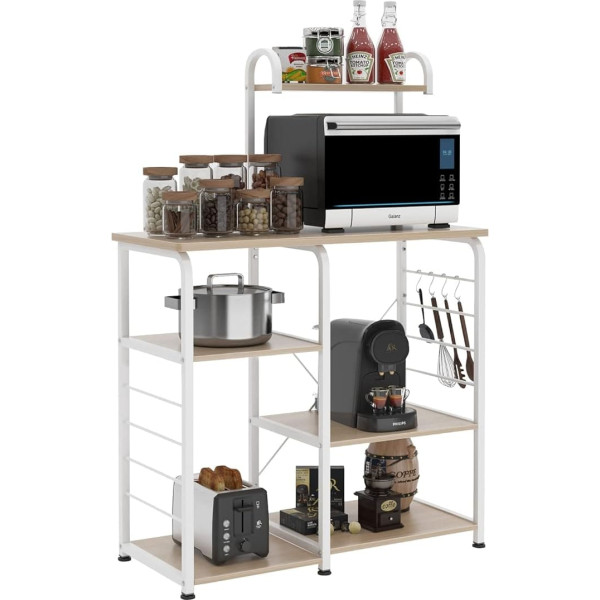 ✔ DURABLE MATERIAL - The kitchen shelf features solid particle wood with smooth surface, waterproof and scratch resistant, durable powder coated metal frame, which makes the shelf more stable and durable. ✔ MULTIFUNCTIONAL KITCHEN RACK - Can be used as microwave stand, kitchen organizer, shelf and tableware organizer. Levels at different heights can hold types of kitchen accessories such as microwave, toaster etc. ✔ BEAUTIFUL CONSTRUCTION: Five small moving hooks on the sides make it easy to hang cooking utensils. The microwave stand is constructed of two diagonal struts on the back, more stable than normal struts. ✔ EASY TO ASSEMBLE - Assembly of the kitchen baker rack is required, but quick and easy according to the instructions. with all fittings and tools included. If item arrives damaged, please do not hesitate to contact us, we will offer a good solution for you. ✔ Kitchen Shelf Size: L 89.1 cm x W 49.1 cm x H 140.2 cm. This kitchen trolley offers large storage space for your kitchen utensils such as microwave, toaster, broiler and coffee machine etc. › See more product details; Product description Description: Microwave stand: made of particle wood with smooth surface, waterproof and scratch resistant. High-quality metal frame stabilises this kitchen shelf. Kitchen shelf size: L 35.4 inches x W 15.4 inches x H 55.1 inches, this kitchen baking shelf offers large storage space for your kitchen accessories. More details about this kitchen stand 1. Levels of different heights can hold kinds of kitchen accessories to meet your needs. 2. Five small movable hooks on the sides make it easy to hang cooking utensils. 3. The microwave stand consists of two diagonal struts on the back, more stable than normal. 4. Adjustable table feet, can be used for uneven ground conditions. 5. This kitchen shelf is pretty easy to assemble, according to the instructions (English language not guaranteed). English language not guaranteed). Customer Service: You no longer have to worry about buying furniture online. We guarantee that if your item arrives damaged in any way, please do not hesitate to contact us, we will send you a replacement or discount.; Product description Description: Microwave stand: made of particle wood with smooth surface, waterproof and scratch resistant. High-quality metal frame stabilises this kitchen shelf. Kitchen shelf size: L 35.4 inches x W 15.4 inches x H 55.1 inches, this kitchen baking shelf offers large storage space for your kitchen accessories. More details about this kitchen stand 1. Levels of different heights can hold kinds of kitchen accessories to meet your needs. 2. Five small movable hooks on the sides make it easy to hang cooking utensils. 3. The microwave stand consists of two diagonal struts on the back, more stable than normal. 4. Adjustable table feet, can be used for uneven ground conditions. 5. This kitchen shelf is pretty easy to assemble, according to the instructions (English language not guaranteed). English language not guaranteed). Customer Service: You no longer have to worry about buying furniture online. We guarantee that if your item arrives damaged in any way, please do not hesitate to contact us, we will send you a replacement or discount.; Description: Microwave stand: made of particle wood with smooth surface, waterproof and scratch resistant. High-quality metal frame stabilises this kitchen shelf. Kitchen shelf size: L 35.4 inches x W 15.4 inches x H 55.1 inches, this kitchen baking shelf offers large storage space for your kitchen accessories. More details about this kitchen stand 1. Levels of different heights can hold kinds of kitchen accessories to meet your needs. 2. Five small movable hooks on the sides make it easy to hang cooking utensils. 3. The microwave stand consists of two diagonal struts on the back, more stable than normal. 4. Adjustable table feet, can be used for uneven ground conditions. 5. This kitchen shelf is pretty easy to assemble, according to the instructions (English language not guaranteed). English language not guaranteed). Customer Service: You no longer have to worry about buying furniture online. We guarantee that if your item arrives damaged in any way, please do not hesitate to contact us, we will send you a replacement or discount.