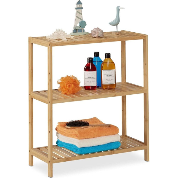 Storage space: bathroom shelf for storing towels, cosmetics, toilet paper and much more. Height adjustable: bamboo standing shelf with 3 shelves - shelves can be attached to 5 levels Design: standing towel rack made of natural, robust bamboo - decorative grain as an eye-catcher All-rounder: standing shelf also for kitchen, hallway and much more. - Utensils on open shelves always at hand Freestanding: bathroom shelf can be placed flexibly without drilling - dimensions (H x W x D): approx. 69 x 60 x 26 cm › See more product details