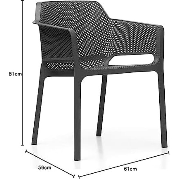 Height: 81 cm, width: 61 cm, depth: 56 cm Fiberglass and resin blend for strength Italian design and manufacture Matt finish Weather-resistant Made of resin and fiberglass UV and weather resistant Designed and made in Italy Stackable chairs for easy storage Show More › See more product details; Product description Product Description A stylish addition to the Nardi range, the Net Chair has a decorative mesh effect stamped into the design, and it uses a relatively new composition of fibreglass reinforced resin. The chairs stack and can be left outside in any weather and are strong enough for contract as well as for home use. Shown here in anthracite, they have a slightly more frosted look than plain resin, and the Libeccio, Clip and Step tables fit perfectly together. Nardi from Italy is a good manufacturer of high-quality resin furniture on the market, all products are made from the best raw materials, designed and manufactured in Italy, they are easy to clean and maintain, UV and weather resistant. Safety Warning Attention: maximum load 110 kg (242 lbs); Product description Product Description A stylish addition to the Nardi range, the Net Chair has a decorative mesh effect stamped into the design, and it uses a relatively new composition of fibreglass reinforced resin. The chairs stack and can be left outside in any weather and are strong enough for contract as well as for home use. Shown here in anthracite, they have a slightly more frosted look than plain resin, and the Libeccio, Clip and Step tables fit perfectly together. Nardi from Italy is a good manufacturer of high-quality resin furniture on the market, all products are made from the best raw materials, designed and manufactured in Italy, they are easy to clean and maintain, UV and weather resistant. Safety Warning Attention: maximum load 110 kg (242 lbs); Product Description A stylish addition to the Nardi range, the Net Chair has a decorative mesh effect stamped into the design, and it uses a relatively new composition of fibreglass reinforced resin. The chairs stack and can be left outside in any weather and are strong enough for contract as well as for home use. Shown here in anthracite, they have a slightly more frosted look than plain resin, and the Libeccio, Clip and Step tables fit perfectly together. Nardi from Italy is a good manufacturer of high-quality resin furniture on the market, all products are made from the best raw materials, designed and manufactured in Italy, they are easy to clean and maintain, UV and weather resistant. Safety Warning Attention: maximum load 110 kg (242 lbs)