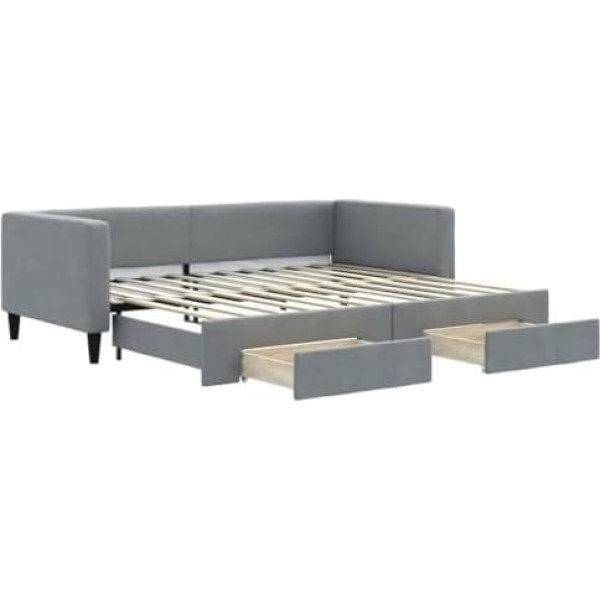 Vidaxl Day Bed, Sofa Bed Extendable with Drawers, Guest Bed, Sofa Bed for Bedroom, Living Room, Sofa Extendable Bed, Light Grey, 90 x 200 cm Fabric