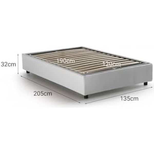 CHIARA Square and Half Bed - Container Bed with Fabric Covering, 100% Made in Italy, Front Opening, Includes Mattress Cm 120 x 190 cm, White Structure: the bed structure is made of raised wood fibre with ABS feet: the bed frame is covered with soft polyester fabric, which is removable and machine washable at 30 °C. The slatted frame made of plywood is included in the structure. Opening mechanism made of iron. The practical space-saving storage box transforms the bed into a spacious box for sheets, pillows and duvets Includes mattress: anatomical, air-conditioned orthopaedic mattress with removable cover, 120 x 190 cm, height 21 cm, structure made of solid polyurethane foam H 17 cm, density 30EP, covered with viscoelastic memory foam H 2 cm, density 55EP, diamond shaped in the upper part - cover made of 130 g stretch fabric, removable and machine washable at 60 °C - padding made of 1. 00% Polytechno fibre, hypoallergenic and mite-free on both sides - Equipped with a breathable tri-space band with zip and fabric handle 100% made in Italy - 100% Italian production guarantees reliability and resistance - attention to production processes, the selection of high-quality raw materials and attention to detail make this bed solid, comfortable and durable Dimensions and opening – Bed dimensions: length 205 x width 135 x height 32 cm (net height from base: 32 cm) – container opening: front – container depth: approx. 20 cm – height of the feet: approx. 10 cm – bottom made of melamine the bed with a thickness of 1 cm – mattress dimensions: 120 x 190 cm › See more product details