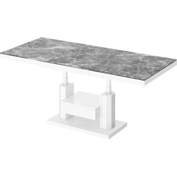 HM-120 Designer Coffee Table with Drawer High Gloss Infinitely Height Adjustable Extendable Dining Table Colour: Marble Dark High Gloss White High Gloss