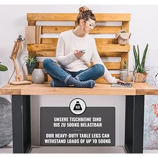 Beautify your home: the table is often the centrepiece of a room - with our industrial style table legs, you can enhance your decor even better Easy to install: this table frame can be mounted quickly and safely thanks to the pre-drilled holes and the included screws Long service life: the table legs made of Q235 steel impress with their minimalist and modern design and are a sensible and long-term furniture investment thanks to their long service life Stylish: Minimalist furniture belongs to every trendy open-plan office. Clear lines and neutral colours are the key to this. Our table runners are perfect for such work areas For all home workers: let your creativity run wild and use our versatile table frame to transform your existing table or create completely new pieces of furniture that perfectly match the decor › See more product details; Product description Does your old dining table need a new design? Do you like your old, wobbly coffee table so much that you would be reluctant to part with it? A new table frame could be the right solution for you! Simply replace the table base of your dining table or desk with our simple and modern industrial style table legs and redesign your home or office without spending a lot of money. Steel frame. High load capacity. Pre-drilled holes Long service life. Screws included Technical information: Industrial design table legs Product dimensions: Dimensions (L x H): 900 x 720 mm. Weight: approx. 12.6 kg. Maximum load: 500 kg. Mounting holes (dimensions): φ 10 x 20 mm. Number of mounting holes: 8-12. Mounting plate (thickness): 4 mm. Steel frame dimensions: 1 x 40 x 80 mm. Recommended screws (included): M4 x 25 mm (12 pieces + 2 replacements). Material: Q235 steel. Colour: black. Package includes: 1 x table frame (TSHGLsw-90x72), in black colour, for self-assembly, includes: 1 x user manual (EN/FR/DE/IT). Note: The decoration in the pictures is not included. Note: We cannot deliver our products to islands. Note: Colours may vary slightly from the pictures.; Product description Does your old dining table need a new design? Do you like your old, wobbly coffee table so much that you would be reluctant to part with it? A new table frame could be the right solution for you! Simply replace the table base of your dining table or desk with our simple and modern industrial style table legs and redesign your home or office without spending a lot of money. Steel frame. High load capacity. Pre-drilled holes Long service life. Screws included Technical information: Industrial design table legs Product dimensions: Dimensions (L x H): 900 x 720 mm. Weight: approx. 12.6 kg. Maximum load: 500 kg. Mounting holes (dimensions): φ 10 x 20 mm. Number of mounting holes: 8-12. Mounting plate (thickness): 4 mm. Steel frame dimensions: 1 x 40 x 80 mm. Recommended screws (included): M4 x 25 mm (12 pieces + 2 replacements). Material: Q235 steel. Colour: black. Package includes: 1 x table frame (TSHGLsw-90x72), in black colour, for self-assembly, includes: 1 x user manual (EN/FR/DE/IT). Note: The decoration in the pictures is not included. Note: We cannot deliver our products to islands. Note: Colours may vary slightly from the pictures.; Does your old dining table need a new design? Do you like your old, wobbly coffee table so much that you would be reluctant to part with it? A new table frame could be the right solution for you! Simply replace the table base of your dining table or desk with our simple and modern industrial style table legs and redesign your home or office without spending a lot of money. Steel frame. High load capacity. Pre-drilled holes Long service life. Screws included Technical information: Industrial design table legs Product dimensions: Dimensions (L x H): 900 x 720 mm. Weight: approx. 12.6 kg. Maximum load: 500 kg. Mounting holes (dimensions): φ 10 x 20 mm. Number of mounting holes: 8-12. Mounting plate (thickness): 4 mm. Steel frame dimensions: 1 x 40 x 80 mm. Recommended screws (included): M4 x 25 mm (12 pieces + 2 replacements). Material: Q235 steel. Colour: black. Package includes: 1 x table frame (TSHGLsw-90x72), in black colour, for self-assembly, includes: 1 x user manual (EN/FR/DE/IT). Note: The decoration in the pictures is not included. Note: We cannot deliver our products to islands. Note: Colours may vary slightly from the pictures.