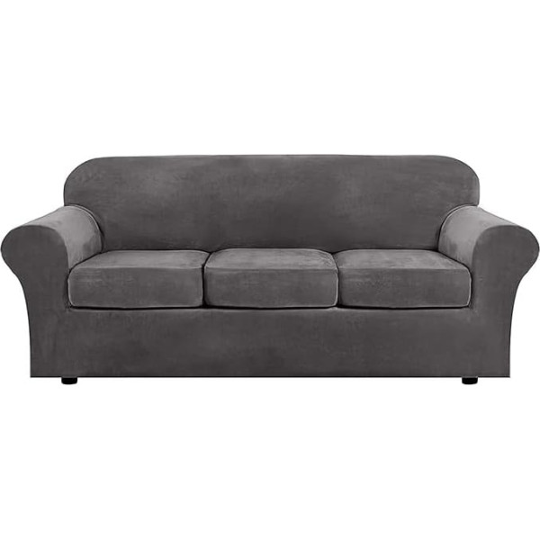 Sofa Cover Sets with Separate Seat Cushion Covers, Sofa Slipcover Anti-Slip with Elastic Band, Stretch Furniture Protector (Ivory, Sofa (4 Pieces)) (Colour: Dark Grey, Size: Large Sofa (4 Pieces))