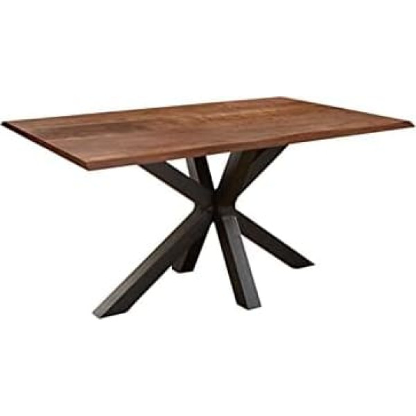 High-quality wooden table - The 140 x 80 cm and 26 mm thick walnut-coloured table top is made of solid acacia and treated with a clear varnish. The stylish and matt black lacquered metal frame in spider shape ensures high stability. Robust unique piece - Due to the unique grains and the different edge embodiments, you will receive a unique piece with individual character. The structure and colour differences of the solid wood give any room a warm ambience. Real Tree Edge - Highlight of the dining room table are the table edges, which correspond to the natural shapes of a tree and have been cut directly from the tree trunk. As the table is a pure natural product, there may be knotholes or different colour decorations. Easy to combine - The timeless design ensures that the wooden table looks contemporary and fashionable even tomorrow. This elegant table can be easily combined with different pieces of furniture and interior styles. EASY CARE - This piece of furniture is characterised by its easy care and cleaning. Light dirt can be easily cleaned with a moderately damp cloth. › See more product details