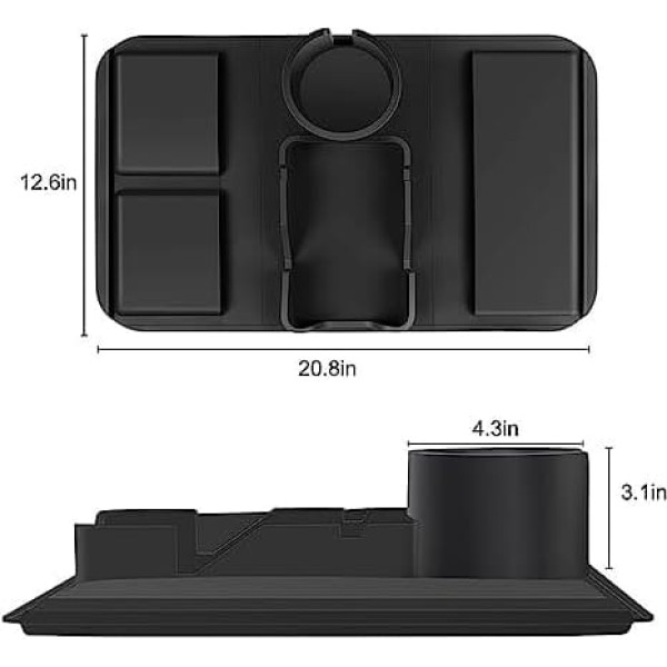 Function: water cup placement/remote control placement/tablet and phone placement/other product placement. NON SLIP The convex drink cup slot prevents the drink from falling off easily, and the card slot of the phablet can place your phone and tablet stably. The bottom of the cushion has a non-slip hollow pattern that does not slip when placed on the sofa. ENJOY YOUR SOFA REST TIME The drinks, phablet and other electronic devices you need to use, remote controls, books, contaminants, pens, notebooks, etc. are near the armrests of the sofa for your convenience. Material & Size Made of high quality silicone material, which is waterproof and easy to clean. Flat size: 53 cm, 32 cm. GIFT FOR YOUR LOVED ONES Make life easier for all couch lovers by solving the biggest problem of keeping drinks or snacks on the couch. Give them this unique and practical coffee mug holder for birthdays, anniversaries, Christmas, New Year, Thanksgiving and many more occasions. It is a useful gift for your family and friends! › See more product details; Product description Function: water cup placement/remote control placement/tablet and phone placement/other product placement.; Product description Function: water cup placement/remote control placement/tablet and phone placement/other product placement.; Function: water cup placement/remote control placement/tablet and phone placement/other product placement.