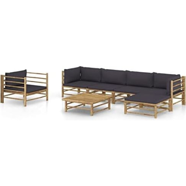 Homgoday Gartenmöbel-Set, 7-teilig, mit dunkelgrauen Kissen, aus Bambus, Schlafsofa-Set für Wohnzimmer, 2 Ecksofas + 2 Mittelstücke + Sessel + Fußstütze + Tisch dunkelgrau