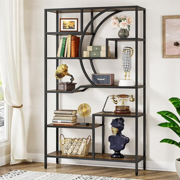Lots of storage space: the open back design and 6 tier shelves provides ample space to store and display books, framed photos, vases, collections, potted plants and storage boxes, keeping your home office tidy and tidy. The different height shelves make the displayed items patchwork-like, more layered and at the same time stylish and beautiful. MULTIFUNCTIONAL OPEN BOOKSHELF With its beautiful and practical design, this tiered bookcase is ideal for living room, office, bedroom, study, hallway, etc. Perfect as a bookcase, display shelf, room divider, plant stand to organise or display. Everything you wanted makes it a versatile piece of furniture that meets all your storage and display needs. STYLISH GEOMETRIC DESIGN: The geometric pattern with curved silhouette paired with vintage panels creates a delicate industrial atmosphere. This chic bookcase will become an eye-catching piece of furniture. Coordinate your space with a unique open bookcase to increase the charm of your room. HIGH QUALITY MATERIAL AND SAFETY DESIGN: This vintage bookcase is made of high quality chipboard and sturdy metal frame and is designed for durability. The maximum load capacity of each shelf is 22 kg. Adjustable foot pads ensure that the tall bookcase remains stable even on uneven floors and does not scratch the floor. To increase safety, we have developed a tilt protection device to avoid falls and accidents and ensure stability. Easy to assemble: dimensions: 100 x 30 x 175 cm. All the tools needed, instructions and numbered parts are included, making assembly of the storage rack a breeze. We offer 18 months warranty and friendly customer service before and after purchase. If you have any questions, please feel free to contact us. › See more product details
