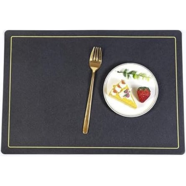 Amdxd Set of 4 Boho Square Place Mats, PU Leather Place Mats, Vintage, Plain, Golden Lines, Non-Slip, Table Coasters, Dining Table, Black for Table, Bar and Kitchen, 30 x 43 cm