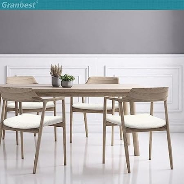 ‎Granbest Granbest Jacquard Dining Chair Seat Covers, High Stretch Anti-Dust Seat Protector for Dining Room Kitchen (Beige, Set of 6)