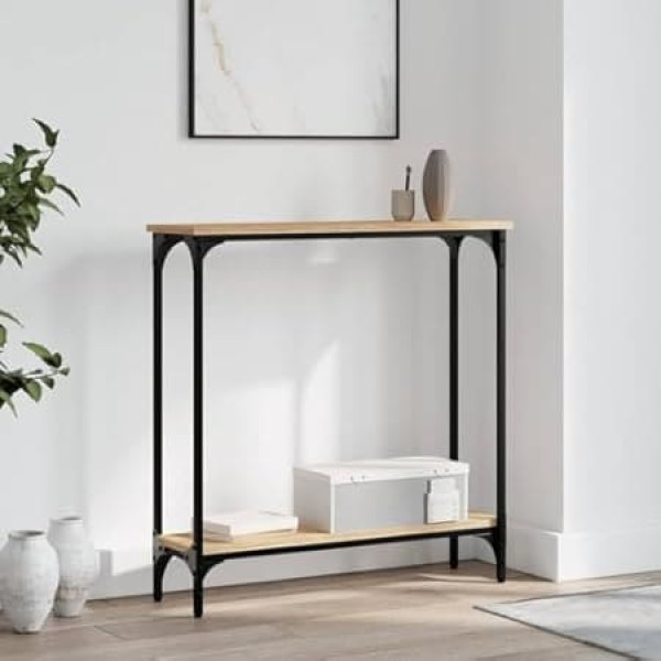 This stylish console table adds a touch of elegance to your hallway, living room or entrance area. Durable material: wood material is an exceptional quality material with smooth surface, which is characterized by strength, stability and moisture resistance. Made of wood material, the sofa table is easy to clean. Ample Storage Space: The entryway table provides plenty of storage space to keep magazines, books, decorative items and other everyday items neatly and within easy reach. ADJUSTABLE LEGS The four adjustable legs with plastic caps give the hallway table extra stability, even on uneven surfaces. Metal frame: the metal frame adds an industrial touch to your interior while ensuring durability and stability. › See more product details; Product description This stylish console table adds a touch of elegance to your hallway, living room or entrance area. Durable material: wood material is an exceptional quality material with smooth surface, which is characterized by strength, stability and moisture resistance. Made of wood material, the sofa table is easy to clean. Ample Storage Space: The entryway table provides plenty of storage space to keep magazines, books, decorative items and other everyday items neatly and within easy reach. ADJUSTABLE LEGS The four adjustable legs with plastic caps give the hallway table extra stability, even on uneven surfaces. Metal frame: the metal frame adds an industrial touch to your interior while ensuring durability and stability. Attention: To avoid tipping over, this product should be secured with the included wall bracket. Colour: Sonoma Oak Material: wood material, metal. Dimensions: 75 x 22.5 x 75 cm (L x W x H). Assembly Required: Yes; Product description This stylish console table adds a touch of elegance to your hallway, living room or entrance area. Durable material: wood material is an exceptional quality material with smooth surface, which is characterized by strength, stability and moisture resistance. Made of wood material, the sofa table is easy to clean. Ample Storage Space: The entryway table provides plenty of storage space to keep magazines, books, decorative items and other everyday items neatly and within easy reach. ADJUSTABLE LEGS The four adjustable legs with plastic caps give the hallway table extra stability, even on uneven surfaces. Metal frame: the metal frame adds an industrial touch to your interior while ensuring durability and stability. Attention: To avoid tipping over, this product should be secured with the included wall bracket. Colour: Sonoma Oak Material: wood material, metal. Dimensions: 75 x 22.5 x 75 cm (L x W x H). Assembly Required: Yes; This stylish console table adds a touch of elegance to your hallway, living room or entrance area. Durable material: wood material is an exceptional quality material with smooth surface, which is characterized by strength, stability and moisture resistance. Made of wood material, the sofa table is easy to clean. Ample Storage Space: The entryway table provides plenty of storage space to keep magazines, books, decorative items and other everyday items neatly and within easy reach. ADJUSTABLE LEGS The four adjustable legs with plastic caps give the hallway table extra stability, even on uneven surfaces. Metal frame: the metal frame adds an industrial touch to your interior while ensuring durability and stability. Attention: To avoid tipping over, this product should be secured with the included wall bracket. Colour: Sonoma Oak Material: wood material, metal. Dimensions: 75 x 22.5 x 75 cm (L x W x H). Assembly Required: Yes