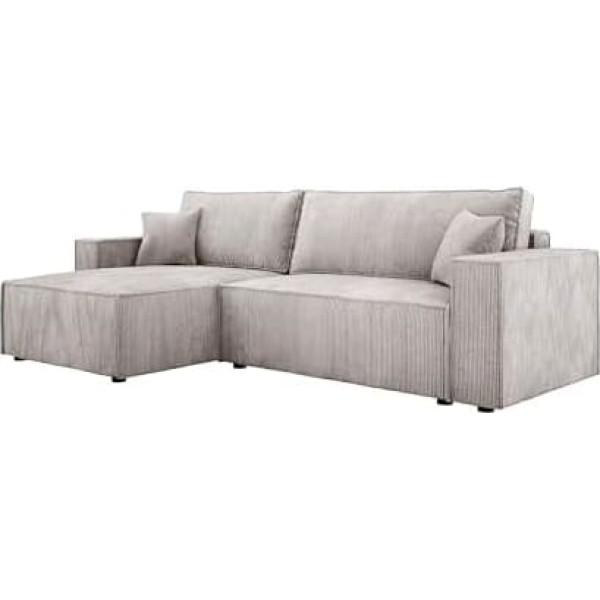 ✔ COMFORT AND FUNCTIONALITY: The POSO XL corner sofa combines wave springs and highly flexible foam for optimal seating comfort and durability. ✔VERSATILE L SHAPE: The sofa has a universal L shape with the possibility of mounting the ottoman on both sides, ideal for different room layouts. ✔ Practical sleep function: with an area of 230 x 130 cm, the sofa easily transforms into a cosy sleeping area. ✔ SPACIOUS STORAGE SPACE The generous bedding container makes it easy to store blankets and pillows. ✔ HIGH QUALITY CORDUROY FINISH - Durable soft corduroy fabric provides an appealing look and is ideal for both modern and classic interiors. › See more product details; Product description Product description Poso XL corner sofa with sleep function and bed linen box. Equipped with wave springs and highly flexible foam, its solid wood and furniture board construction is covered with a durable corduroy fabric that is abrasion resistant. The universal L-shape and the ability to mount the ottoman on both sides make the sofa perfect for any interior. The spacious bedding container makes storage easier, and the soft fabric adds coziness, making it the ideal place to relax. Specifications: L Shape Universal (ottoman can be mounted on both sides) Spacious bedding box Two soft back padding. Decorative pillows with zipper included Freestanding (back covered with fabric) Round plastic legs Wood and furniture panel construction Sleep function DL. Padded seat with wave springs and T30 foam. In the version shown in POSO 02 fabric. Dimensions of the sofa: Width: 277 cm. Height: 83 cm. Depth: 143 cm. Seat depth: 52 cm. Seat height: 40 cm. Leg height: 5 cm. Ottoman width: 100 cm. Sleeping area: 230 x 130 cm. Box measures 21 x 112 x 61 cm The POSO fabric is characterised by a pronounced, striped structure that is soft and three-dimensional at the same time. It has high abrasion resistance, which ensures long-lasting use. Technical data: Fabric type: velour Composition: 100% polyester. Pattern: stripes, wide corduroHigh pilling resistance. Safety Warning No; Product description Product description Poso XL corner sofa with sleep function and bed linen box. Equipped with wave springs and highly flexible foam, its solid wood and furniture board construction is covered with a durable corduroy fabric that is abrasion resistant. The universal L-shape and the ability to mount the ottoman on both sides make the sofa perfect for any interior. The spacious bedding container makes storage easier, and the soft fabric adds coziness, making it the ideal place to relax. Specifications: L Shape Universal (ottoman can be mounted on both sides) Spacious bedding box Two soft back padding. Decorative pillows with zipper included Freestanding (back covered with fabric) Round plastic legs Wood and furniture panel construction Sleep function DL. Padded seat with wave springs and T30 foam. In the version shown in POSO 02 fabric. Dimensions of the sofa: Width: 277 cm. Height: 83 cm. Depth: 143 cm. Seat depth: 52 cm. Seat height: 40 cm. Leg height: 5 cm. Ottoman width: 100 cm. Sleeping area: 230 x 130 cm. Box measures 21 x 112 x 61 cm The POSO fabric is characterised by a pronounced, striped structure that is soft and three-dimensional at the same time. It has high abrasion resistance, which ensures long-lasting use. Technical data: Fabric type: velour Composition: 100% polyester. Pattern: stripes, wide corduroHigh pilling resistance. Safety Warning No; Product description Poso XL corner sofa with sleep function and bed linen box. Equipped with wave springs and highly flexible foam, its solid wood and furniture board construction is covered with a durable corduroy fabric that is abrasion resistant. The universal L-shape and the ability to mount the ottoman on both sides make the sofa perfect for any interior. The spacious bedding container makes storage easier, and the soft fabric adds coziness, making it the ideal place to relax. Specifications: L Shape Universal (ottoman can be mounted on both sides) Spacious bedding box Two soft back padding. Decorative pillows with zipper included Freestanding (back covered with fabric) Round plastic legs Wood and furniture panel construction Sleep function DL. Padded seat with wave springs and T30 foam. In the version shown in POSO 02 fabric. Dimensions of the sofa: Width: 277 cm. Height: 83 cm. Depth: 143 cm. Seat depth: 52 cm. Seat height: 40 cm. Leg height: 5 cm. Ottoman width: 100 cm. Sleeping area: 230 x 130 cm. Box measures 21 x 112 x 61 cm The POSO fabric is characterised by a pronounced, striped structure that is soft and three-dimensional at the same time. It has high abrasion resistance, which ensures long-lasting use. Technical data: Fabric type: velour Composition: 100% polyester. Pattern: stripes, wide corduroHigh pilling resistance. Safety Warning No
