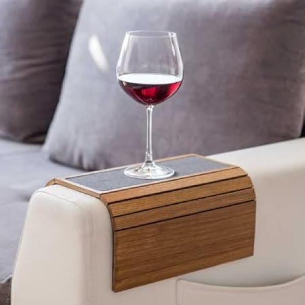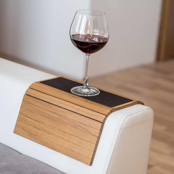 The wooden sofa arm is made of ash wood and plywood to make it stronger. The back is made of soft, non-slip fabric that holds firmly on any surface. A natural tree is used, so the colour of the shade may vary slightly from the visible picture. Dimensions of sofa armrest: 44 x 30 cm, thickness: 0.8 cm. It consists of 22 sticks, each 2 x 30 cm. Fabric space size: 9 x 26 cm. Weight approx. 800 g The sofa arm is made of fabric or phone holder that works on round sofa arms. Also possible sofa arm without extras included (without mobile phone holder and fabric) It is possible to personalise it with engraving. Just write us text or logo you want to engrave
