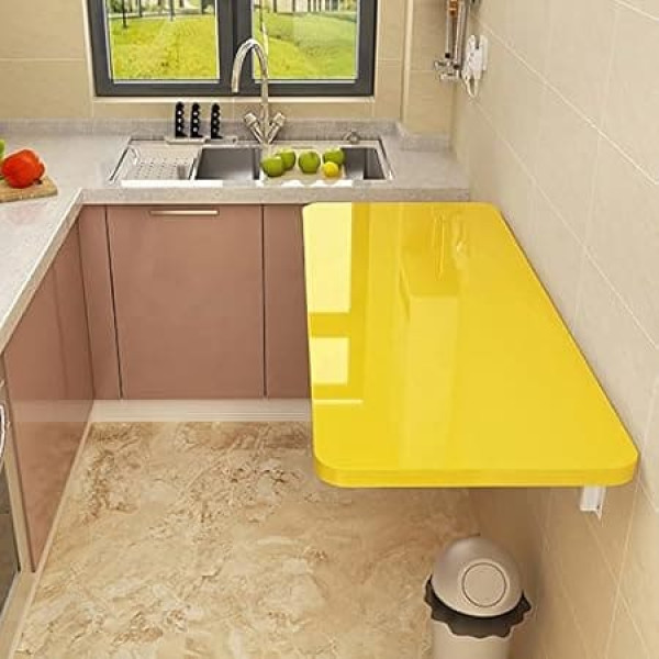 Generisch Klapptisch zur Wandmontage, für Waschküche, Arbeitszimmer, Küche, Bar, Gelb, 60 x 50 cm, kompakter Klapptisch für kleine Räume, schwimmender Schreibtisch für Esszimmer, Essbereich