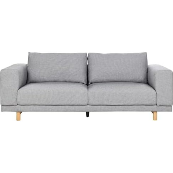 Trendy 3-seater in Scandinavian Sitl with comfortable seating comfort Light grey cover made from high-quality and easy-care fabric. Sturdy, cute legs made of durable wood Ensures a high level of comfort thanks to the wide armrests, thick filling and large seat Perfect choice for Scandinavian, mid-century and modern interiors Delivery includes instructions for easy self-assembly › See more product details; Product description Trendy 3-seater upholstered sofa with sturdy wooden legs. This modern sofa enriches your living space with a nostalgic charm by seamlessly combining classic, wide and symmetrical design elements with modern comfort and high-quality materials. The couch features sturdy wooden legs, a deep seat, thick back cushions and wide armrests. The 3-seater promises a particularly high level of seating comfort, which makes it the favourite place of the whole family. Combine the fabric sofa with mid-century furniture and accessories for a complete look. Details: Type: 3 seater sofa. Style: Modern Colour: grey. Colour: light grey. Material type: fabric. Material: polyester. Additional material: rubberwood Filling material: pocket springs. Composition: 100% polyester. Armrests: straight. Armrests: yes. Back with padded cover: yes. Pattern: No Pattern Seat construction: wave suspension. Foam density: 25 kg/m3. Number of seats: 3 people. Dimensions: Armrest height: 62 cm. Depth: 84 cm. Cushion thickness: 28 cm. Seat height: 40 cm. Width: 220 cm. Height: 76 cm. Seat area: 170 x 52 cm. Weight: 50 kg. Max. Maximum load: 150 kg. You are buying: 1 x three-seater. Product advantages: Excellent comfort, fits perfectly with many interior styles, high-quality padding, non-slip stand, all-round cover and therefore can be placed freely in the room. Installation: Legs / feet not assembled. 5 - 15 minutes.; Product description Trendy 3-seater upholstered sofa with sturdy wooden legs. This modern sofa enriches your living space with a nostalgic charm by seamlessly combining classic, wide and symmetrical design elements with modern comfort and high-quality materials. The couch features sturdy wooden legs, a deep seat, thick back cushions and wide armrests. The 3-seater promises a particularly high level of seating comfort, which makes it the favourite place of the whole family. Combine the fabric sofa with mid-century furniture and accessories for a complete look. Details: Type: 3 seater sofa. Style: Modern Colour: grey. Colour: light grey. Material type: fabric. Material: polyester. Additional material: rubberwood Filling material: pocket springs. Composition: 100% polyester. Armrests: straight. Armrests: yes. Back with padded cover: yes. Pattern: No Pattern Seat construction: wave suspension. Foam density: 25 kg/m3. Number of seats: 3 people. Dimensions: Armrest height: 62 cm. Depth: 84 cm. Cushion thickness: 28 cm. Seat height: 40 cm. Width: 220 cm. Height: 76 cm. Seat area: 170 x 52 cm. Weight: 50 kg. Max. Maximum load: 150 kg. You are buying: 1 x three-seater. Product advantages: Excellent comfort, fits perfectly with many interior styles, high-quality padding, non-slip stand, all-round cover and therefore can be placed freely in the room. Installation: Legs / feet not assembled. 5 - 15 minutes.; Trendy 3-seater upholstered sofa with sturdy wooden legs. This modern sofa enriches your living space with a nostalgic charm by seamlessly combining classic, wide and symmetrical design elements with modern comfort and high-quality materials. The couch features sturdy wooden legs, a deep seat, thick back cushions and wide armrests. The 3-seater promises a particularly high level of seating comfort, which makes it the favourite place of the whole family. Combine the fabric sofa with mid-century furniture and accessories for a complete look. Details: Type: 3 seater sofa. Style: Modern Colour: grey. Colour: light grey. Material type: fabric. Material: polyester. Additional material: rubberwood Filling material: pocket springs. Composition: 100% polyester. Armrests: straight. Armrests: yes. Back with padded cover: yes. Pattern: No Pattern Seat construction: wave suspension. Foam density: 25 kg/m3. Number of seats: 3 people. Dimensions: Armrest height: 62 cm. Depth: 84 cm. Cushion thickness: 28 cm. Seat height: 40 cm. Width: 220 cm. Height: 76 cm. Seat area: 170 x 52 cm. Weight: 50 kg. Max. Maximum load: 150 kg. You are buying: 1 x three-seater. Product advantages: Excellent comfort, fits perfectly with many interior styles, high-quality padding, non-slip stand, all-round cover and therefore can be placed freely in the room. Installation: Legs / feet not assembled. 5 - 15 minutes.